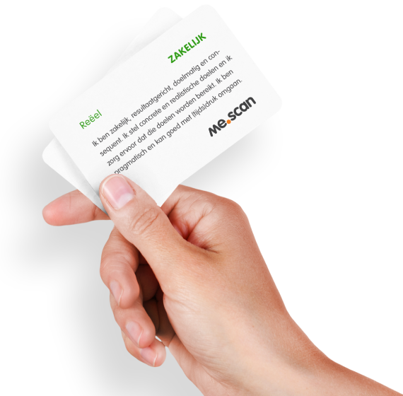 Mensen ontwikkelen zich van jongs af aan vooral door de ervaringen die zij opdoen en door de manier waarop hun omgeving hun gedrag waardeert of afkeurt. Opvoeders, rolmodellen, de cultuur waarvan iemand deel uitmaakt, allemaal hebben ze invloed op de ontwikkeling die je als mens doormaakt. Maar, leer je dan gedrag dat bij jou past of juist gedrag dat bij jouw omgeving past. me.scan omzeilt de invloed van anderen, geeft inzicht in wat echt bij jezelf past en welk gedrag is aangeleerd om aan de verwachtingen van de omgeving te voldoen. De me.scan maakt persoonlijke ontwikkeling persoonlijk.